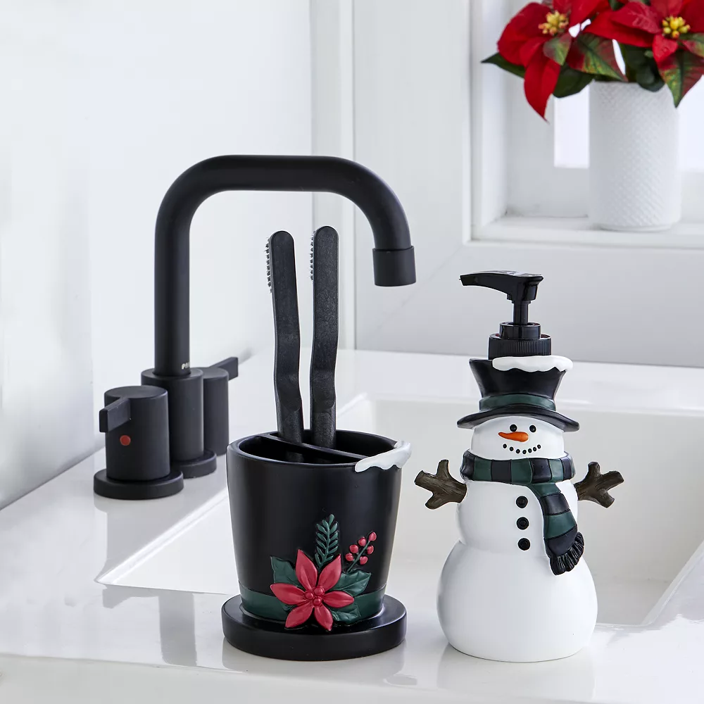 Bring a classic feel to your holiday décor with the SKL Home Rustic Plaid Toothbrush Holder & Soap Pump Set.