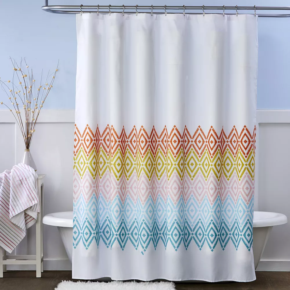 Freshen up your bathroom ambiance with this The Big OneĀ® Palmas Geo Shower Curtain.