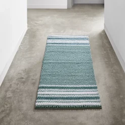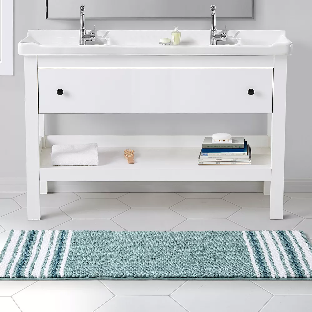 MDesign Striped Microfiber Polyester Rug, Non-Slip Spa Mat – Runner
